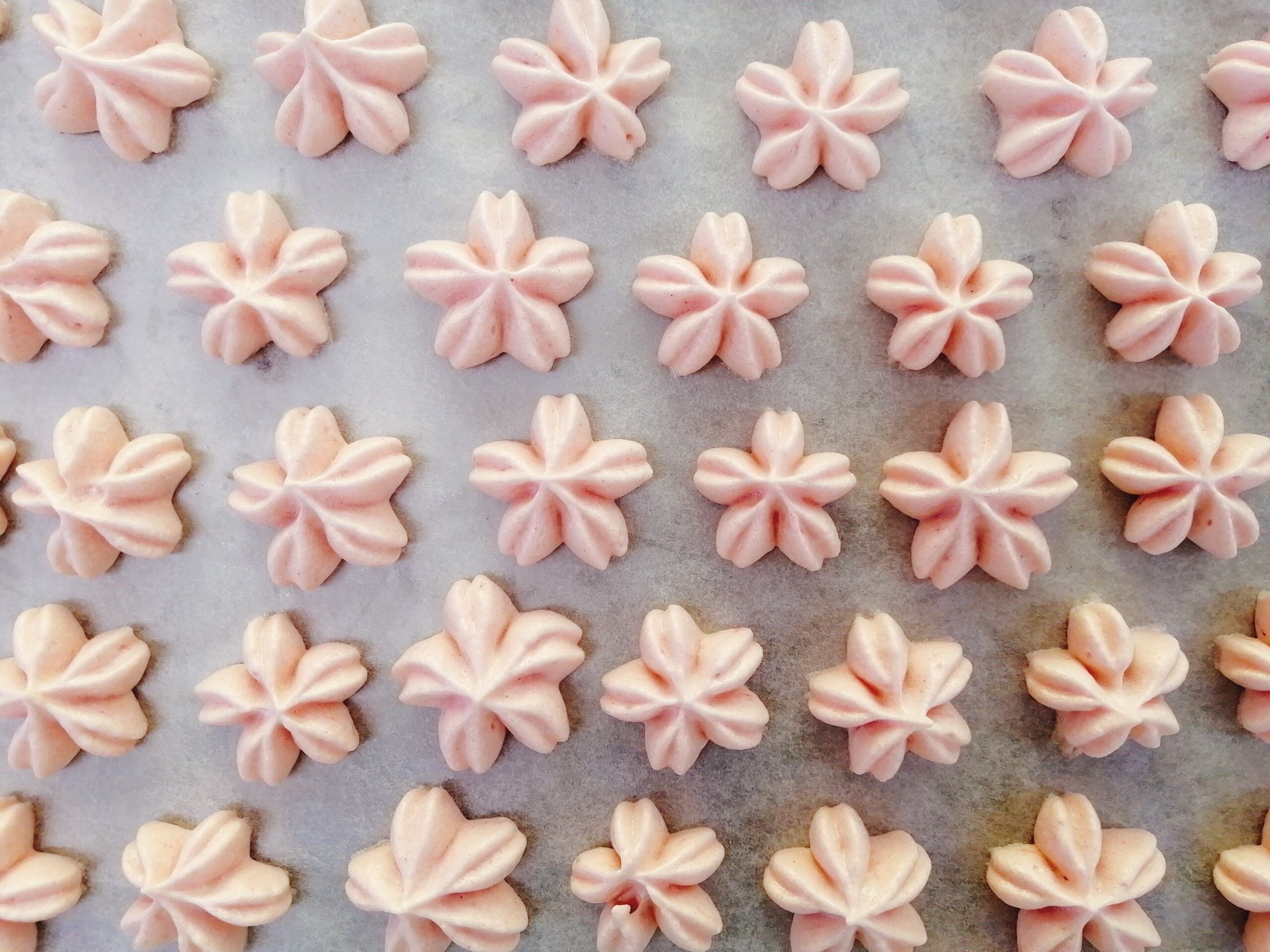 *原材料名(卵白・砂糖・コーンスターチ・桜パウダー・天然色素)